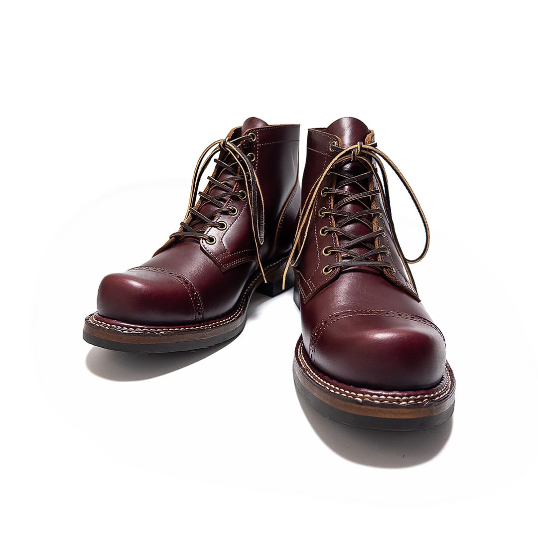 オリジナルオイルドレザーを使用したキャップトゥレースアップブーツ。