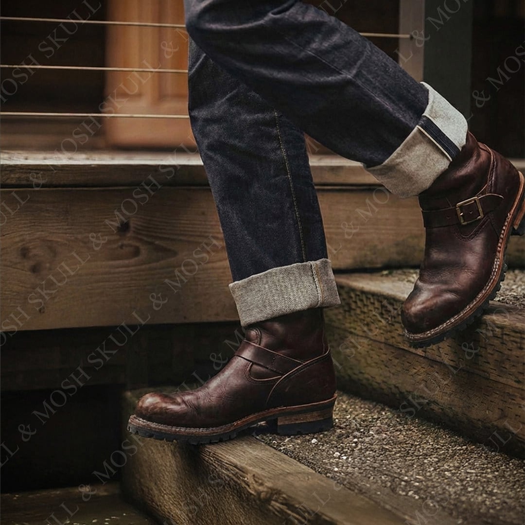 オリジナルオイルドレザー(茶芯)を使用したエンジニアブーツ。