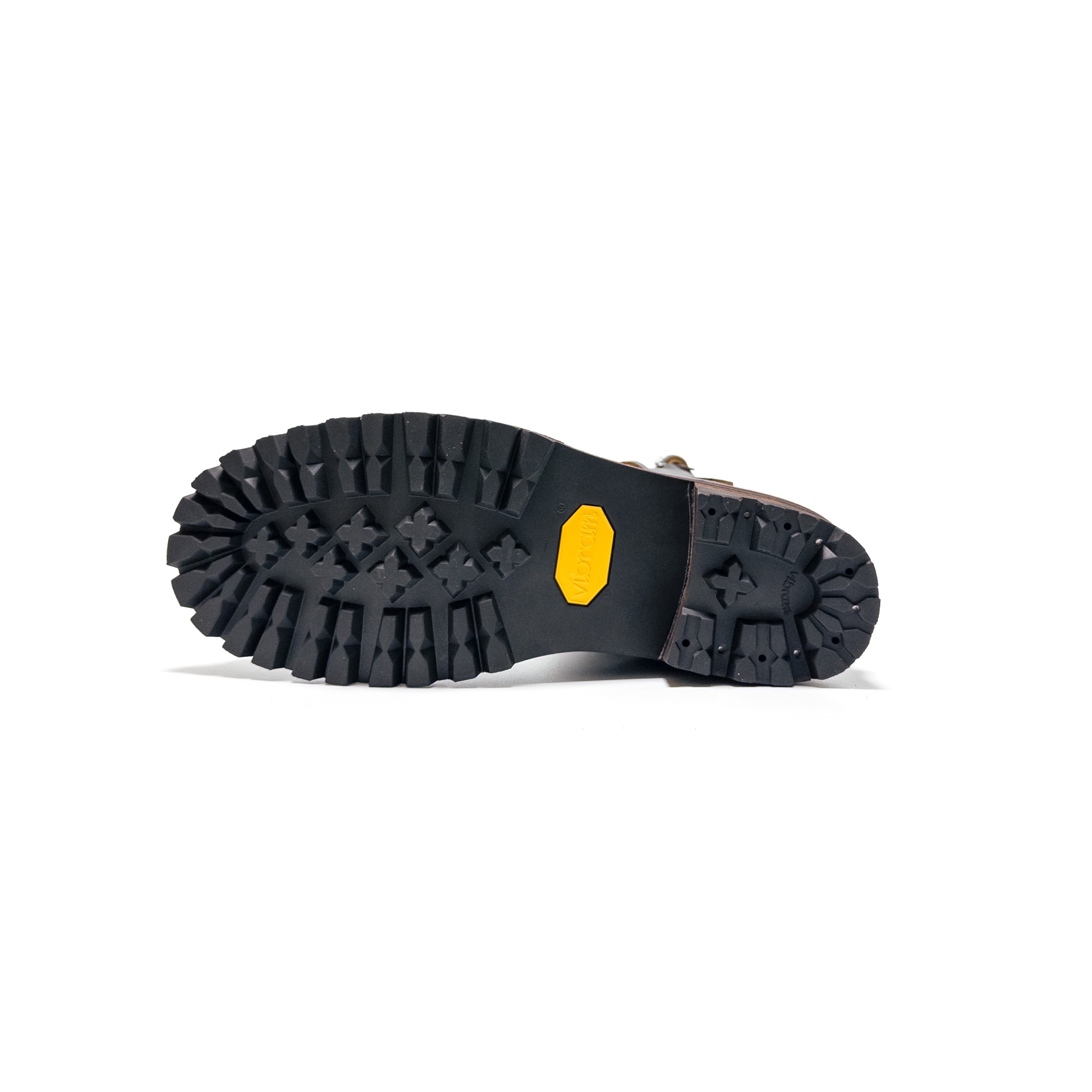 Double welt stitching enhances durability, while a Vibram sole provides outstanding abrasion resistance and superior grip. Delivering stable traction and confident footing on various surfaces, it also adds substantial volume to the silhouette, creating a rugged, earthy, and wild aesthetic.