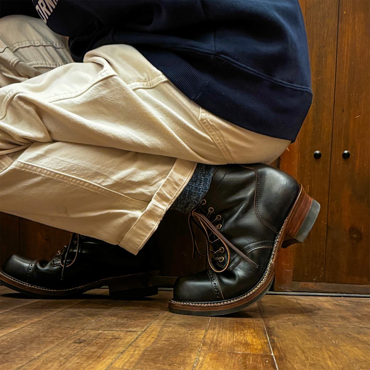 ワークブーツのような無骨さを、繊細なステッチや程よいツヤ感はドレスシューズのような上品さを。ワークとドレスが同居したオリジナルスタイルのブーツとなっております。
